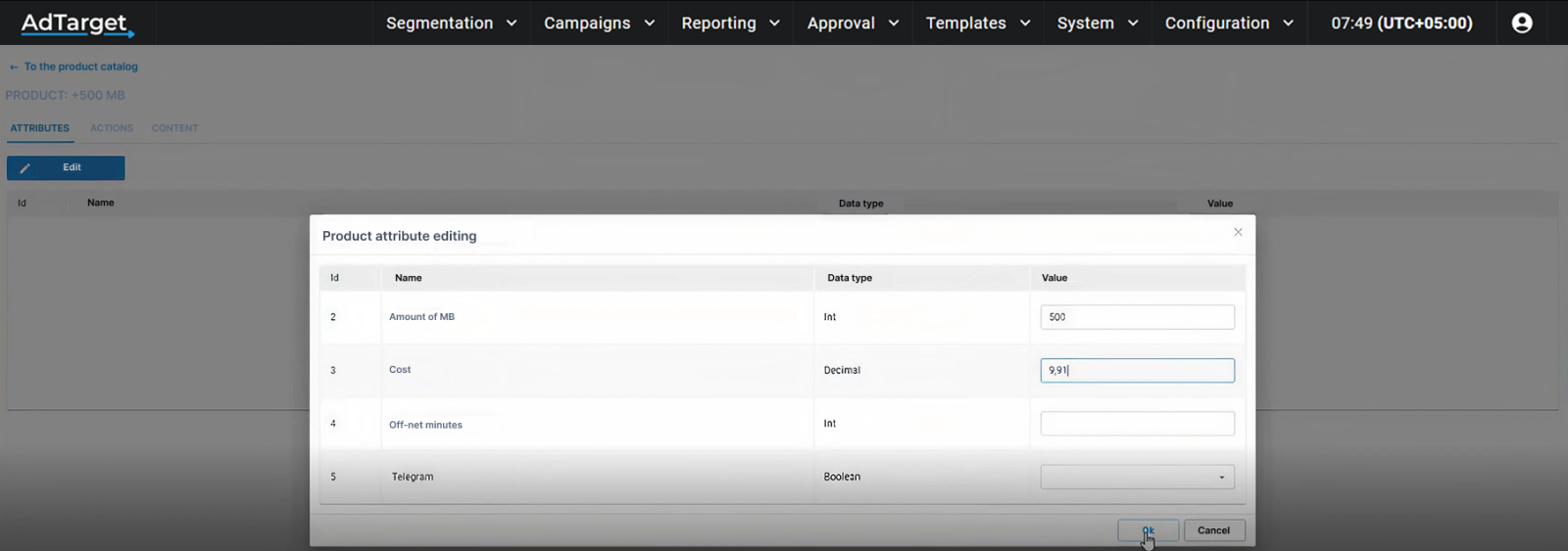 Mobile operators and banks may have hundreds or even thousands of products for different customer segments. Previously, when creating campaigns, users had to manually enter each product and define its characteristics, which was time-consuming.Solution