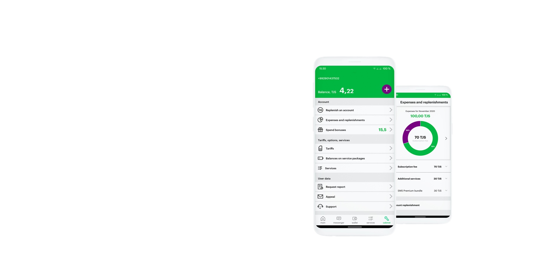 | В личном кабинете абоненты проверяют баланс телефона, меняют тариф, подключают дополнительные минуты, SMS и интернет. А ещё они привязывают к мобильному кошельку карты или электронные деньги, чтобы переводить родным часть заработка или оплачивать расходы. Изменяют тарифный план. Пополняют счет. Управляют услугами и опциями. Контролируют остатки пакетов услуг. Просматривают детализацию расходов и пополнений. Получают персональные предложения от оператора и партнеров. Обращаются в чат-бот и получают ответы на заданные вопросы. Личный кабинет заменяет пользователям сразу несколько приложений. |