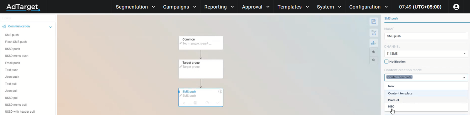 The product catalog simplifies campaign management: there's no need to describe products manually, build workflows from scratch, or write offer texts for every campaign. Users can simply select the necessary parameters from a drop-down list and adjust them if needed.